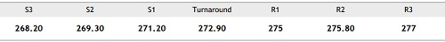 Rangebound trades with mild positive bias expected. Slip below 272.90 could initiate weakness.