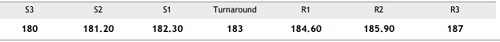 Rangebound trades with mild positive bias expected. Slip below 183 level could induce mild weakness.