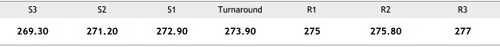 Rangebound trades with mild positive bias expected. Slip below 273.90 could initiate weakness.