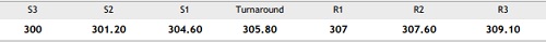 Sustained trades above 305.80 may offer upside room. Slip below the same region may induce mild weakness.