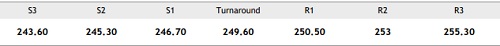 Prices expected to exhibit southbound trades. Rebound above 249.60 may offer upside room.