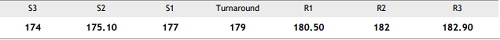 Mild weakness expected in this session. Rebound above 179 may alter this bias.