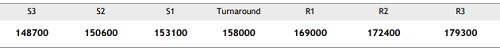Rebounds above 158000 region may offer upward momentum. Slip below 153100 may induce weakness.