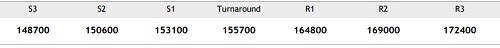 Prices expected to edge northward in this session. Slip below 155700 may induce weakness.