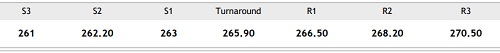An extended dip below the 263 level could trigger further weakness. Revisiting trades above 265.90 may offer upward momentum.