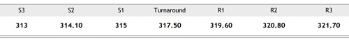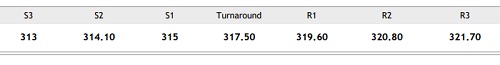 Prices may appear weaker below 315. Revisiting trades above 317.50 could induce rebounds.