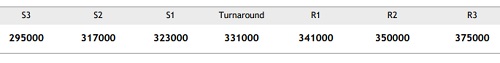 Upward momentum is expected in this session. Slip below the 331000 region may induce liquidation pressure.