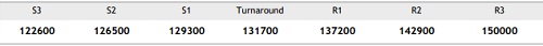 Sustained trades above 131700 could strengthen upward momentum. Slip below the same may induce liquidation move.