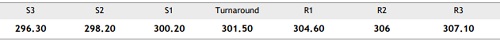 Solid trades above 304.60 may offer upward momentum. Slip below 301.50 could trigger weakness.