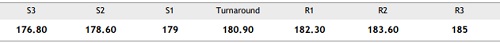 Range bound trades with mild positive bias expected. Slip below 180.90 could change this bias.