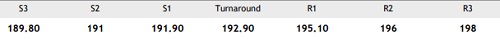 Range bound trades with mild positive bias expected. Slip below 192.90 may alter this bias.