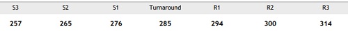 Prices may extend northward moves in this session. Slip below the 285 may signal further weakness.