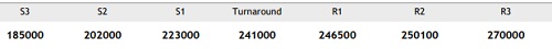 Solid trades above 241000 region may offer some upsides. However, a slipe below 223000 may signal weakness.