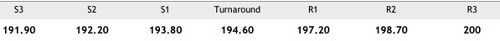 Range bound trades with mild positive bias expected. Slip below 194.60 could trigger weakness.