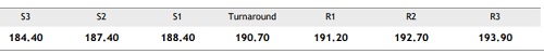 Extended dip below 188.40 could induce weakness. Solid move above 190.70 could offer some upside room.