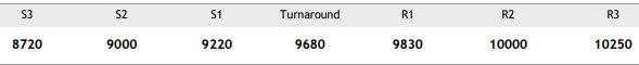 Slip below 9220 could trigger weakness. Solid move above 9680 may offer upside room