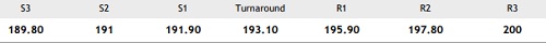 Range bound trades with mild positive bias expected. Slip below 193.10 may alter this bias.