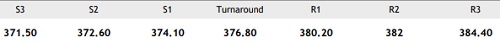Sustained trades above 376.80 may strengthen the prices. A dip below the same induce weakness.