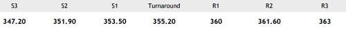 Solid trades above 360 may offer further upside room. Slip below 355.20 may signal weakness.