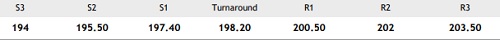 Extended dip below 198.60 could trigger weakness. Holding the same support may cause upticks.