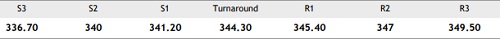 Prices may extend southward trades. Rebound above 344.30 region may alter this bias.
