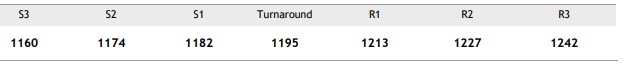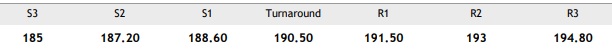 Range bound trades expected. Slip below 188.60 may induce weakness.