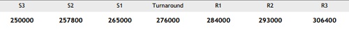 A drop below 265000 may signal further weakness. Revisiting trades above 276000 may alter this bias.