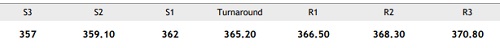 Prices may strengthen with a sturdy move above 365.20. A dip below 362 could induce weakness.