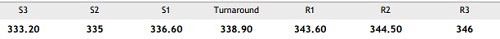 Prices may stretch northward trades. Slip below 338.90 may signal mild correction.