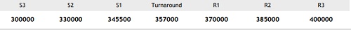 Upward momentum likely to resume. Extended dip below 357000 region could trigger liquidation.