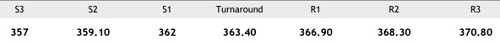 Prices may strengthen with a sturdy move above 366.90. A dip below 363.40 could induce weakness.