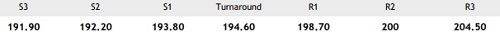 Range bound trades with mild positive bias expected. Slip below 194.60 could trigger weakness.