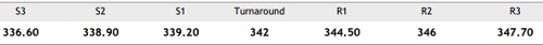 Prices may stretch northward trades. Slip below 342 may signal mild correction.