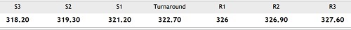 Solid gains above 326 region may offer upside room. Slip below 322.70 could cause further downside moves