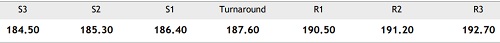 Prices may strengthen with solid trades above 187.60 region. Slip below 186.40 may induce weakness