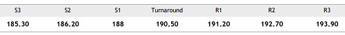 Rebound above 190.50 could strengthen the prices. Slip below 188 could induce weakness as well.