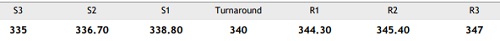 Rebound above 344.30 region may offer upside momentum. Inability to move above the same may induce mild correction.