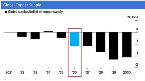 * Market experts expect that the global copper market will post its largest shortfall in more than two decades in 2026, with a deficit of roughly 590,000 metric tons. By 2029, that gap is expected to balloon to nearly 1.1 million tons.