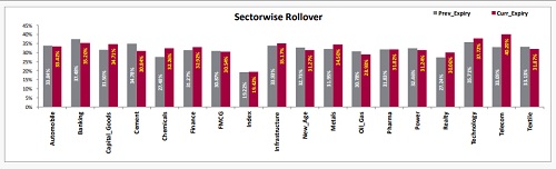 Sector-Level Rollover: On a sectoral front, Telecom, Chemicals, Realty, Capital Goods and Metals saw enhanced rollover volumes, indicating that traders are actively maintaining or building positions in these groups for the upcoming month, reflecting sustained market interest and potentially bullish structural momentum. In contrast, Cement, Banking, Oil & Gas, New Age and Textile sectors recorded lower rollover activity compared to the last expiry. This weaker continuity implies a relative lack of fresh conviction or a tendency to lighten existing exposure in these segments, signaling a more cautious or subdued outlook for the immediate term
