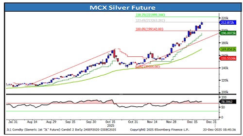 * Gold and silver soared to all-time highs, as escalating geopolitical tensions and bets on further US rate cuts added momentum to the best annual performance in more than four decades. Robust central bank purchases and sustained ETF inflows have also underpinned the rally. The latest push higher comes as traders bet that the Federal Reserve will cut interest rates twice in 2026. Rising geopolitical tensions are also enhancing the haven appeal of gold and silver. We expect bullish momentum will continue in bullion, driven by a strong macro and technical setup. However, investors should remain cautious in the short term regarding this euphoric price movement.