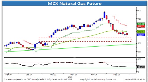 * Crude oil advanced as the US intensified a blockade on Venezuela, with American forces boarding one tanker and pursuing another within weeks of capturing a vessel. Geopolitical risk premiums have helped put a floor under oil prices, which have dropped by about a fifth this year due to oversupply and slowing demand growth. Crude oil prices are expected to recover from their current lower levels in today's session