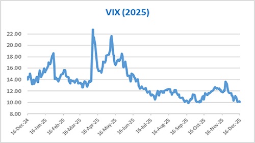 Volatility played a central role in shaping market sentiment during 2025. According to Bajaj Finserv Asset Management, the India VIX crossed the 20-mark six times between January and May, signalling heightened nervousness in the first half of the year. April saw the India VIX peaking at 22.79, with President Trump’s retaliatory tariff announcements. The second half of the year was relatively calm, with the VIX remaining below 15 and averaging around 13.5, despite markets factored in rupee weakness and stalled progress on the Indo–US trade agreement.