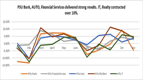 Export-oriented and interest-rate-sensitive sectors faced notable pressure during the year leaving investors to wonder with the unusual divergence. Export sectors lagged due to tariff related uncertainties despite rupee depreciation. Tariff uncertainties weighed down on IT Services which declined 13.7%.
