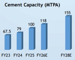 * EBITDA/tn for the previous quarter came at Rs 1061 and aims to achieve Rs 1500 by FY28. Ambuja is likely to deliver higher volume growth than the industry supported by the capacity additions. They are also set to gain meaningfully from the integration of Penna and Sanghi, as both acquired businesses continue improving operations and move steadily toward achieving 4-digit EBITDA per ton.