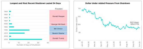* During government shutdowns, non-essential federal services are paused, with some employees furloughed. Publication of key data releases also gets disrupted.