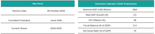 * Argentina is scheduled to hold crucial legislative elections in October, a juncture at which President Javier Milei seeks to fortify his parliamentary influence, with 127 of 257 seats in the Chamber of Deputies and 24 of 72 seats in the Senate up for election.