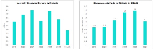* Reduced US Aid may hinder response efforts in dealing with the crises and further strain Ethiopia’s fiscal space and growth prospects.