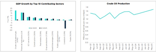* The oil sector grew by 20.5% Y-o-Y in Q2 2025. The growth in the financial sector and other services has sustained their growth momentum in Q2 2025, while livestock has also recorded positive Y-o-Y growth of 1.6% in Q2 2025 following a contraction in Q1 2025.