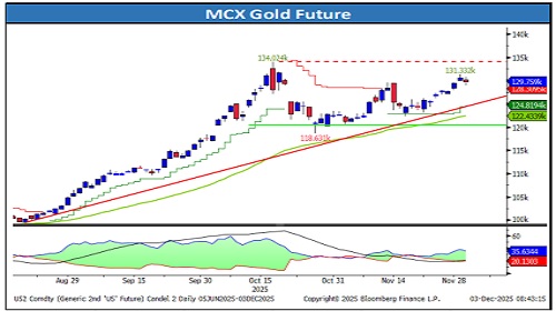 * Intraday Trading Strategy: Buy Gold Mini Jan Fut at 129025-129050 SL 128380 Target 129830/130125
