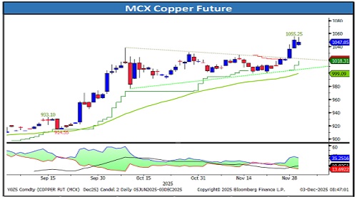 * Intraday Trading Strategy: Buy Copper Dec Fut at 1047-1048 SL 1042.75 Target 1056/1059